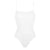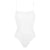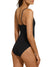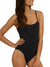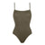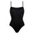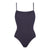 One-piece tank swimsuit. wraparound neckline seam. straight back. thin straight straps.